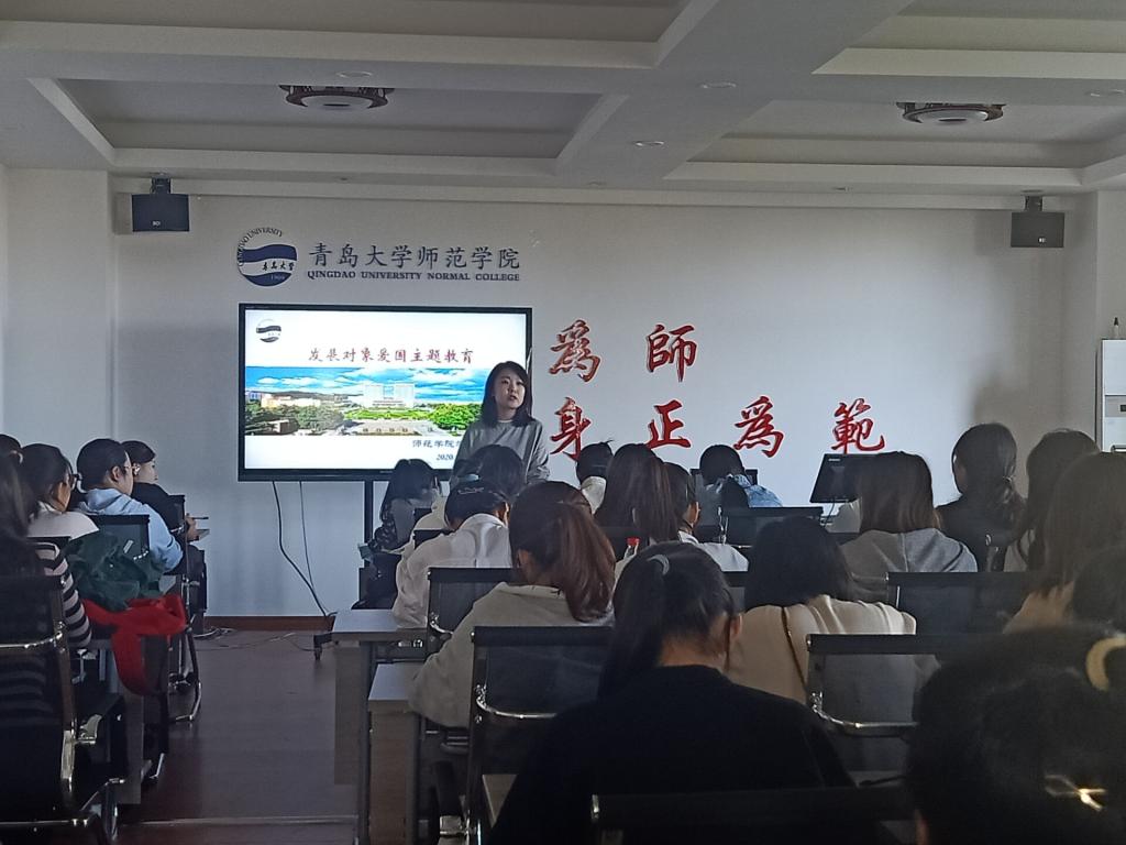 10月9日中午,师范学院学生党支部在德润楼201会议室举办发展对象爱国主题教育会。学生党支部书记赵炜、支委会宣传委员张宁及全体党员发展对象参加本次活动。