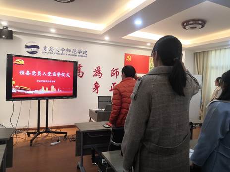 12月12日中午,师范学院学生党支部在德润楼210会议室举行预备党员入党宣誓仪式。仪式由学生党支部书记赵炜主持,全体学生党员和预备党员参加本次宣誓仪式。