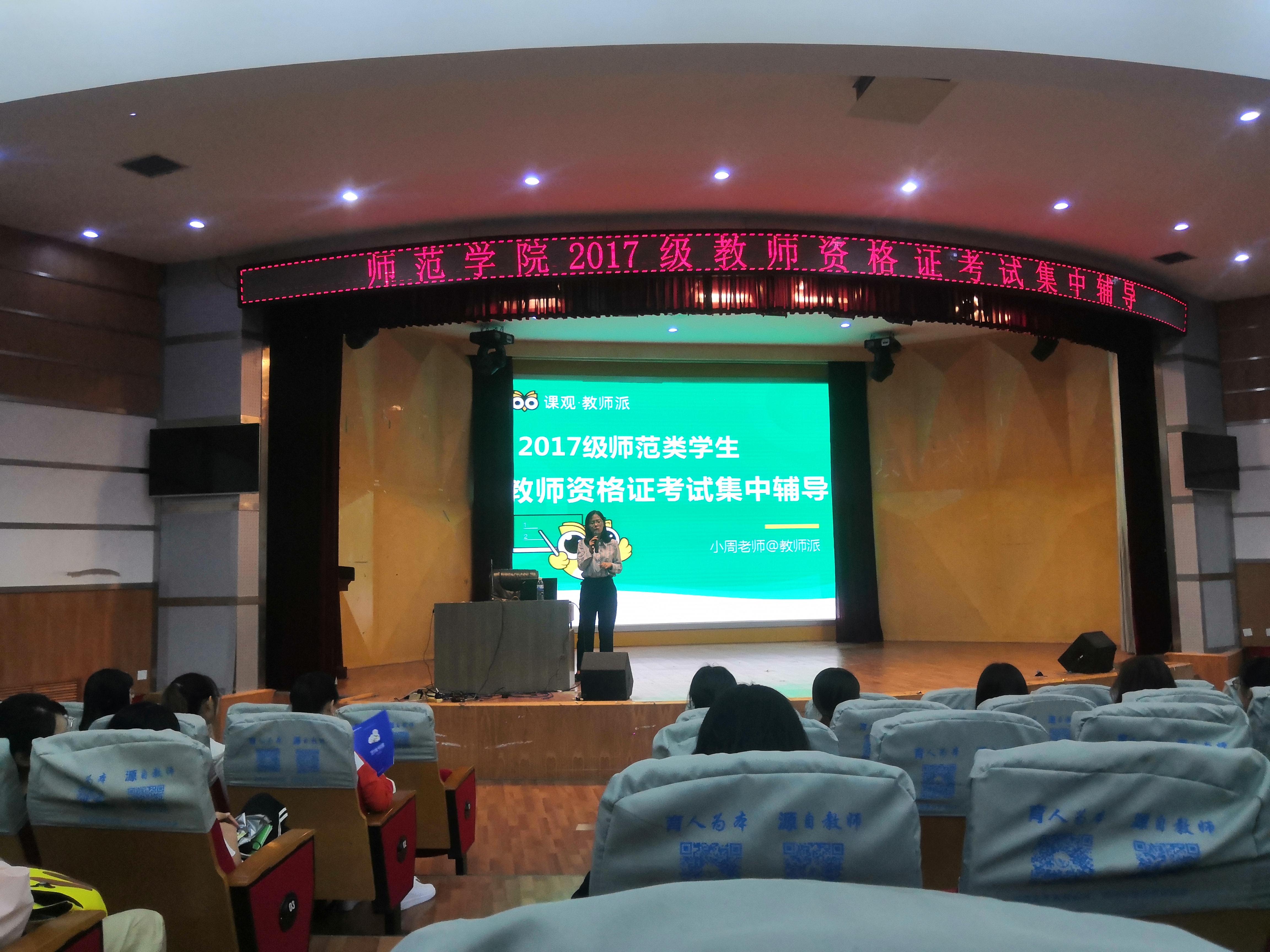 9月19日下午,师范学院在北院报告厅举办2017级教师资格证考试集中辅导,师范学院学工办主任赵炜、2017级导员孙振红出席,师范学院2017级一百多名考生参加了本次活动。