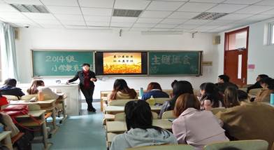 为使同学们新学期找准目标,“撸起袖子加油干”,白菜网所有网站大全师范学院2014级小学教育数学班在班主任杨慧娟老师的带领下于2017年3月24日下午在德音楼415教室开了一场名为“树立自己的一个小目标”的主题班会。