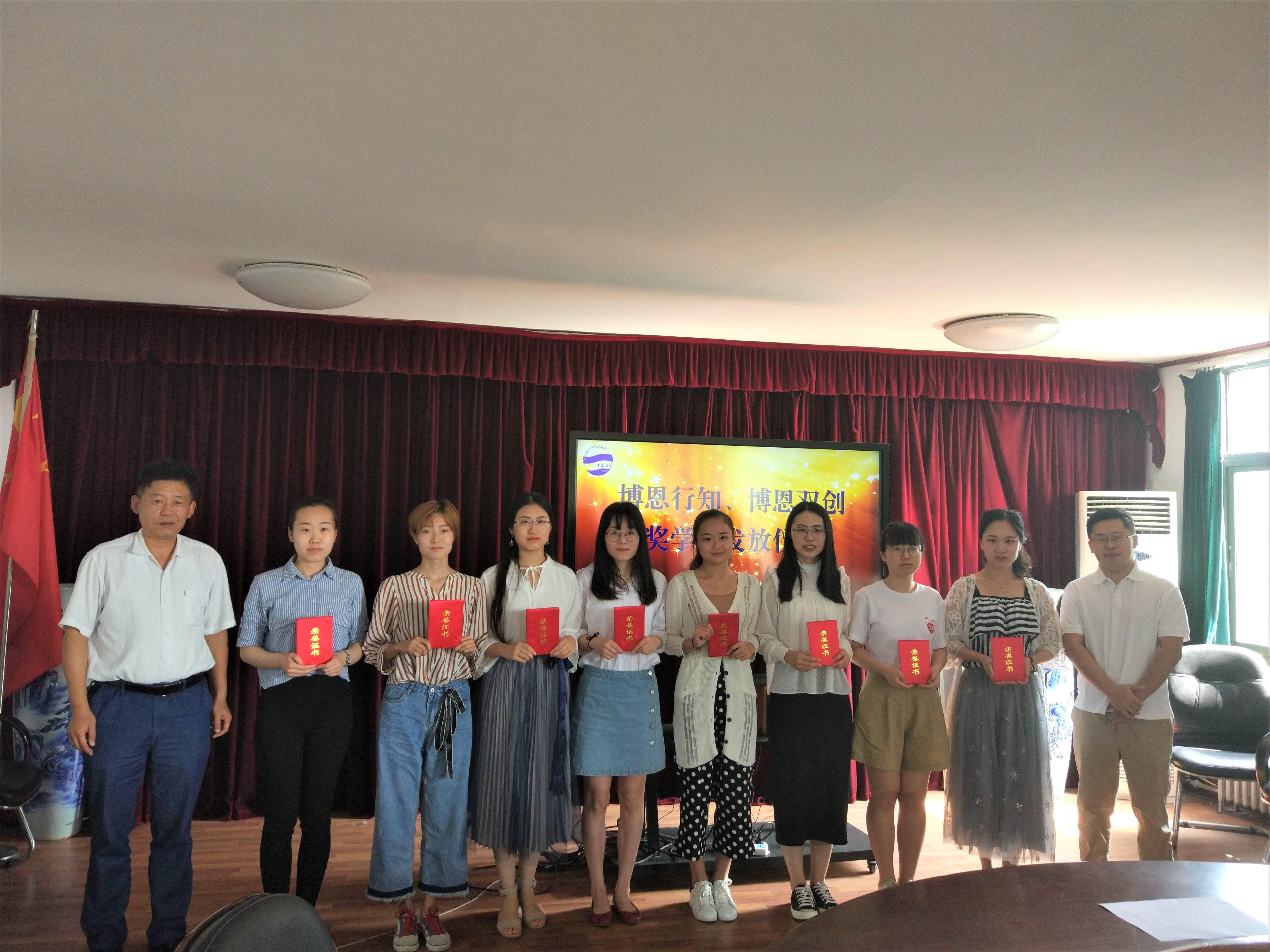 6月15日上午,师范学院博恩行知、博恩双创奖学金发放仪式于德润楼301会议室举行。北京博恩行知教育科技有限公司董事长、优秀校友付洪恩,师范学院党委副书记王成海以及获得2018年博恩行知、博恩双创奖学金的20名同学参加了此次颁奖仪式,仪式由学工办主任赵炜主持。