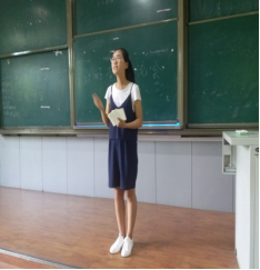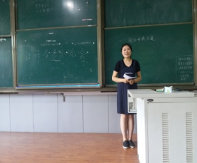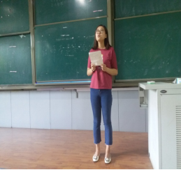 接下来是与同学们做交流分享的是苟田田同学和陈晓宇同学。她们分别为同学们生动形象地展示了教师考录过程中小学语文课本中《司马迁发愤写史记》的模拟讲课和《草原》的说课环节,苟田田同学从鲁迅先生的名句“史家之绝唱,无韵之离骚”导入;陈晓宇同学则以一首草原歌曲导入,铿锵有力的板书生,优美的歌声让同学们振奋,现场响起了热烈的掌声。