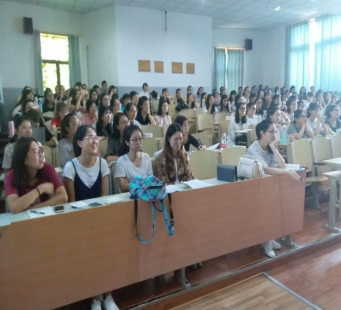最后上台的是王宏语和高田雨同学。她们二人分享了自己的备考经验,例如如何规划自己的复习时间,如何选择教材,进行思维框架的设置以及考前如何有点重点的准备等等,并耐心讲解了现场同学们提出来的问题,为全体2014级学生上了别开生面的精彩的一堂课。