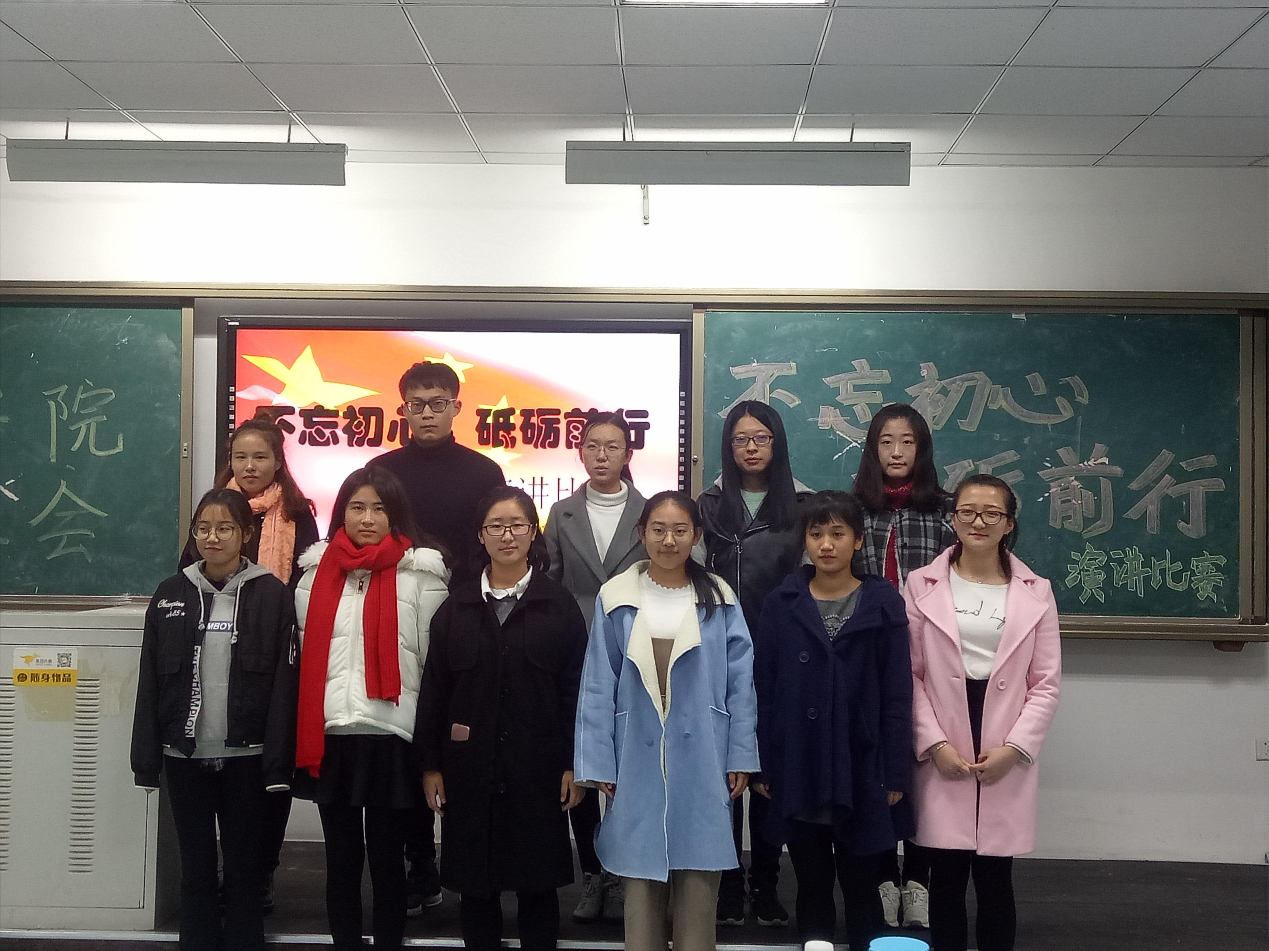 比赛由滕婧名主持。主持人具体宣读了比赛规则,评分标准,奖项设置,选手排序。演讲内容涉及十九大精神、共产党与社会主义、对历史的回顾、对初心和担当的深刻理解等等。比赛现场气氛活跃,有慷慨激昂,也有娓娓道来,无不激荡着其爱国之情,把“不忘初心跟党走,砥砺前行勇担当”的主题诠释的淋漓尽致,进一步领导学生理解十九大,深入党情。