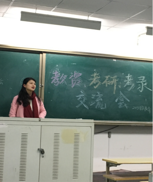 •交流会第一部分为考资(教师资格证考试),主要由刘梅讲解,身为党员的刘梅同学,学习成绩优异,名列前茅。主要给学弟学妹们讲解了考教师资格证的有关事宜,教资内容分为笔试和面试两部分。笔试为保教知识和综合素质,面试分为结构化面试和试讲两方面,结构化面试主要是专业化知识的考察,试讲内容主要是设计五大领域教案。同时,刘梅为学弟学妹们推荐中公教育版书籍。具体的考试内容也要看不同地区的安排。考试时间为每年的三月份和十一月份两次,报名时间为每年一月份和九月份,具体时间按当年公布为准。可以通过查询国家中小学教师资格考试官网和中公教育的微信进行关注。