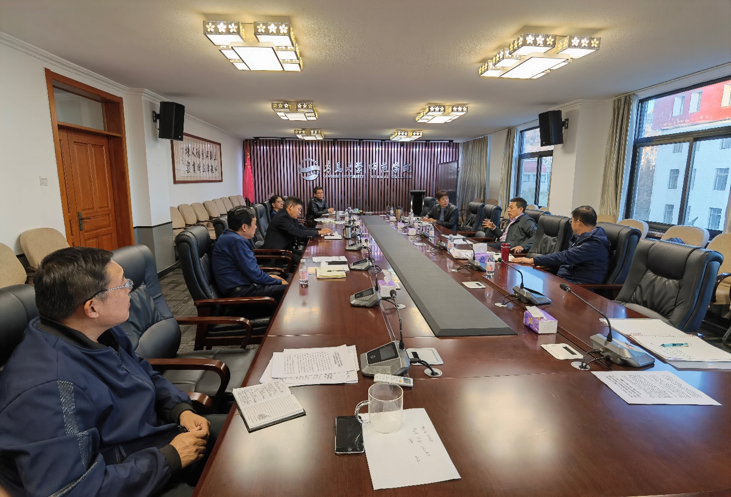 11月11日下午,校党委副书记杜方波到师范学院参加学院党委中心组学习会。师范学院党委书记宋贵欣主持学习会,与会人员一起学习了习近平总书记在深入推动黄河流域生态保护和高质量发展座谈会重要讲话精神等内容,并进行了交流发言。