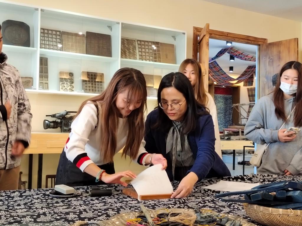 纵观古今,中华大地上涌现出一批又一批璀璨的文化瑰宝,中华上下五千年的历史也正是因为有了这些瑰丽的宝物而变得更加动人。11月3日,2021级学前教育系幼师班学生在孙欣老师的带领下,通过中国文化概论的课堂,有幸走入白菜网所有网站大全民间工艺美术馆,亲眼目睹历史遗留的礼物,领略文化的魅力。此次活动,特邀美术学院彭卫丽老师为同学们示范与讲解。在体验式实践研学中,同学们得以近距离地触摸民间文化。