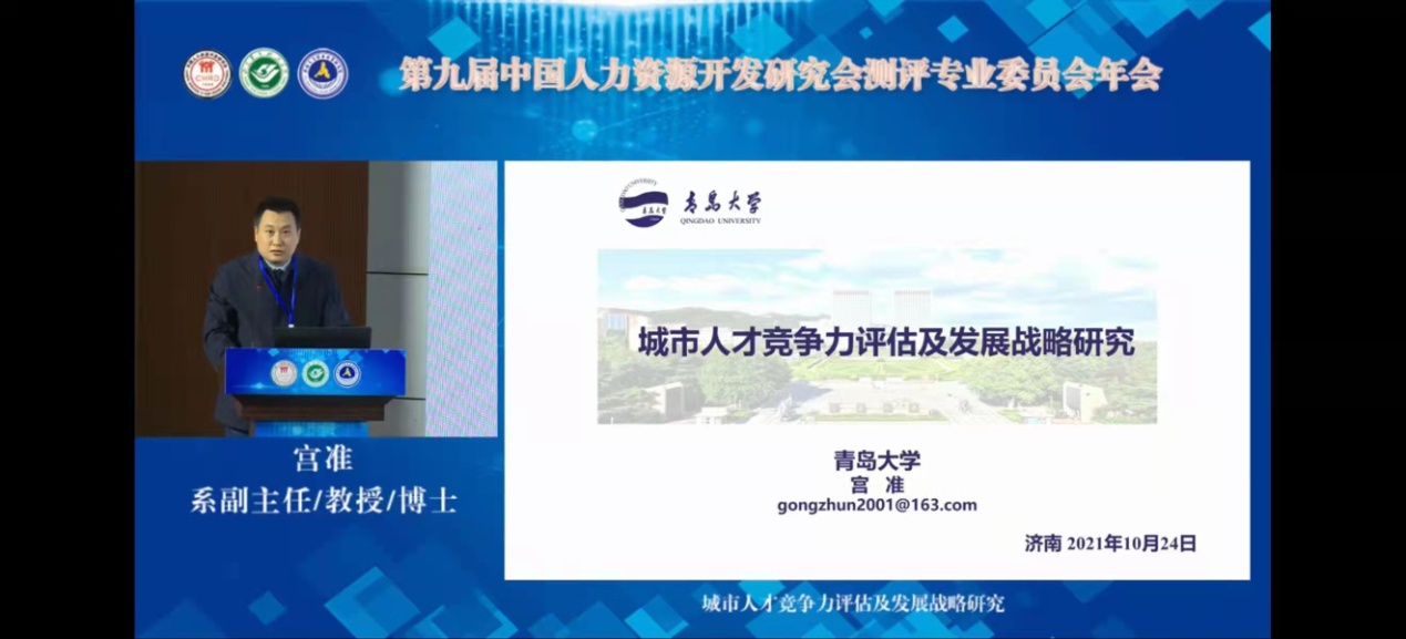 10月23-24日,第九届中国人力资源开发研究会测评专业委员会年会在济南山东青年政治学院举行。白菜网所有网站大全宫准教授主持大会人才测评实践分论坛并在大会做主题报告。与研究生张美倩、赵方圆、王辰、原颖慧合作的论文《人才竞争力评估及发展战略研究——以青岛市为例》获评年会优秀论文。
