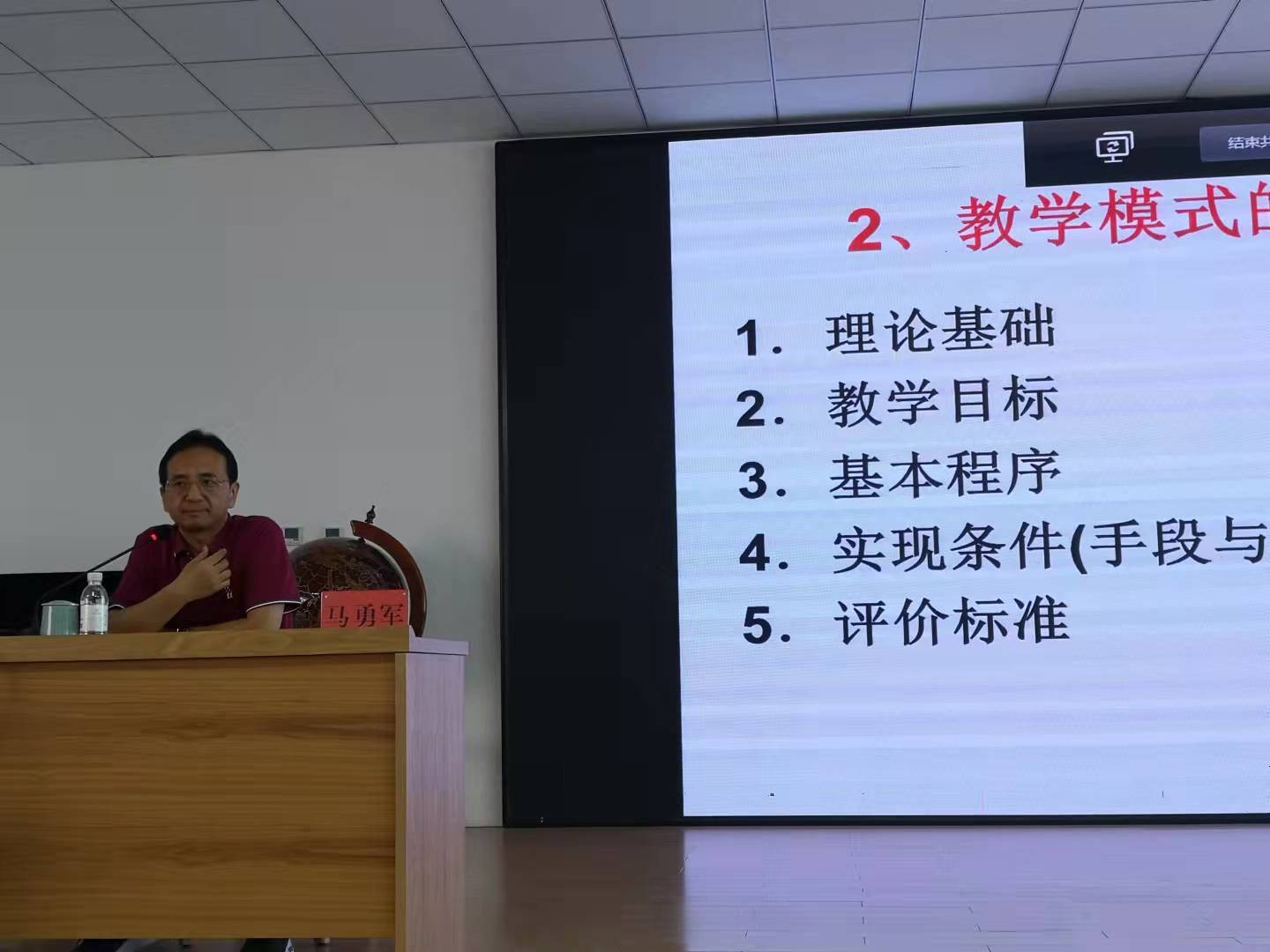 马勇军向参会者讲解了他做教学模式研究的经历,由浅入深,层层递进,引人入胜,先是借助“拟人法”教学思路及实施、“竞争合作-主动愉悦”教学模式两个实例引导大家对教学模式形成初步的感知和理解,他从教学模式的内涵、学校教学模式创生行动研究、基于教学模式创生实践的建构、教学模式的实践推进共四个方面对区域教学模式创生做出进一步的介绍,带领大家获得了更深层次的理解。2021级小学教育系全体研究生全神贯注,认真记录并对教学模式形成了新的看法和理解。