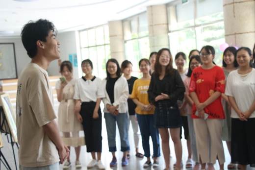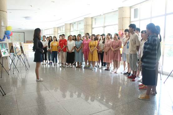 经过同学们的一番努力,整个展厅简洁却不失大气。下午1:30,同学们一起来到了展厅,主持人程琪同学和肖泽琳同学以饱满的精神状态宣布了此次活动正式开始!