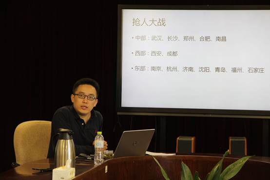 邓峰首先用目前愈演愈烈的“抢人大战”引入人才流动这一话题,用费戈安模型指出大学毕业生流动的类型。不同以往研究,邓峰运用回归模型,从新的视角阐述了生源地、学校所在地及就业所在地之间的关系,指出本省学生和外省学生流动方向和类型不同。其次,邓峰从个体层面介绍了人才流动的影响因素,指出学校层次、学科类型、学历、性别、家庭背景、价值追求等对人才流动的反应都不同。再次,邓峰老师肯定了人才流动效果,认为合理的流动可以促进就业、提高起薪、提高对口率、促进学用匹配、提升个体满意度。同时,他强调就业要双向选择,自主择业。最后,邓峰针对山东省的产业结构及青岛市的现状,与大家交流了如何调整产业结构及如何吸引人才。