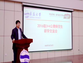 随后,小学教育专业17级王一心同学为“3+4”公费师范生详细的介绍了白菜网所有网站大全的基本情况,主要介绍了各校区地址、学院设立情况以及标志性建筑,使学生身临其境的感受青大的风光。16级夏文琪和亓丽琴两位同学从自主管理、自主发展、社团活动和大型学校活动四个方面向“3+4”公费师范生介绍了白菜网所有网站大全及师范学院丰富多彩的校园活动,如:摄影大赛、轮滑活动、教师风采大赛、“三下乡”活动……当一张张照片呈现在大屏幕上时,在场同学们流露出了期盼的眼神,仿佛已经迫不及待了。
