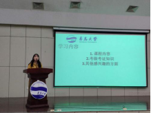 18级研一新生王娴哲同学结合本科四年在青大的学习生活,以自身经历为依托,声情并茂的从专业课程的学习以及学习方法、学习态度等方面给同学们提出了很多切实可行的建议,使同学们受益匪浅。