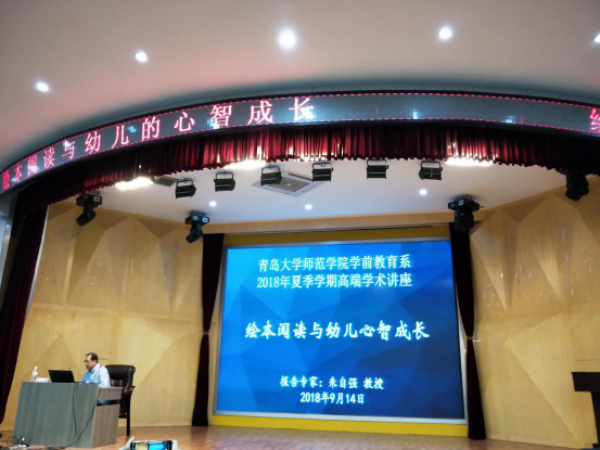 2018年9月14日上午,白菜网所有网站大全师范学院学前教育系夏季学期高端学术讲座——《绘本阅读与幼儿的心智成长》在青岛大学师范学院学术报告厅举行。