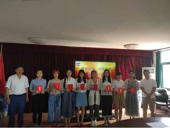 6月15日上午,师范学院博恩行知、博恩双创奖学金发放仪式于德润楼301会议室举行。北京博恩行知教育科技有限公司董事长、优秀校友付洪恩,师范学院党委副书记王成海以及获得2018年博恩行知、博恩双创奖学金的20名同学参加了此次颁奖仪式,仪式由学工办主任赵炜主持。