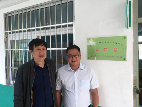 在海信陈家坝小学内,陶教授遇到了同样来参观考察的时任青岛市发改委主任王建平主任、援川办荣占山主任。陶教授讲述了多年来在陈家坝小学等地心理援建工作的经历与成果。王主任高度肯定和赞扬了陶教授团队的工作,双方就十年来援建工作的成果和未来心理援助工作的发展进行了畅谈。