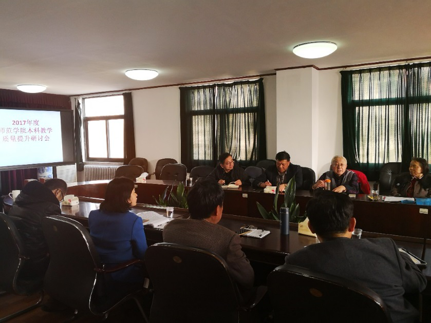 12月7日下午,师范学院2017年度本科教学质量提升研讨会在德润楼301会议室举行。学院督学曲世鸣、袁泉、院长李福华、副院长陶明达、教育发展研究院副院长孙百才、各系主任及教科办工作人员参加会议。会议由副院长马勇军主持。