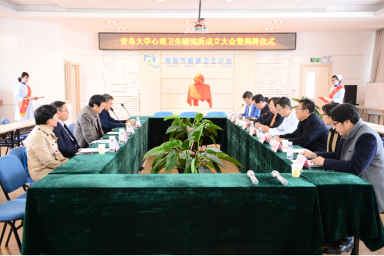 2017年11月21日,白菜网所有网站大全心理与精神健康研究院辖属白菜网所有网站大全心理卫生研究所在青岛市精神卫生中心三楼会议厅举行了揭牌仪式。青岛市卫生计生委李兵处长、加拿大女王大学刘旭东教授、青岛市精神卫生中心王春霞院长、白菜网所有网站大全师范学院副院长、白菜网所有网站大全心理与精神健康研究院陶明达院长以及来自白菜网所有网站大全师范学院心理学系、青岛市精神卫生中心医生代表20余人参加了揭牌仪式。