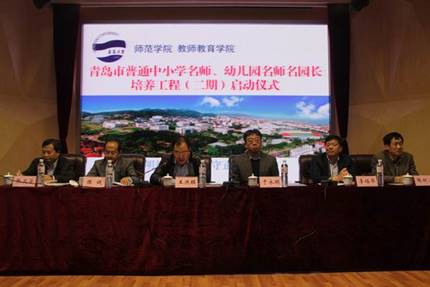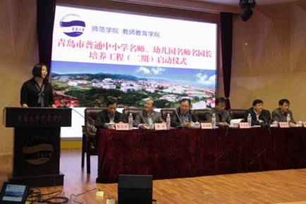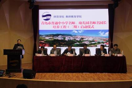 2016年11月4日下午,“青岛市普通中小学名师培养工程(二期)”和“青岛市幼儿园名师名园长培养工程(二期)”启动仪式在我校师范学院学术报告厅成功举办。白菜网所有网站大全副校长于永明,青岛市教育局副局长王洪琪、人事处(教师教育处)处长陈健、副处长张文学,白菜网所有网站大全师范学院副院长陶明达等领导共同出席了启动仪式。启动仪式由师范学院、教师教育学院院长李福华主持,全体名师培养工程人选,师范学院、教师教育学院相关职能部门负责人、各教学系主任、教师及在校研究生和本科生代表参加了启动仪式。