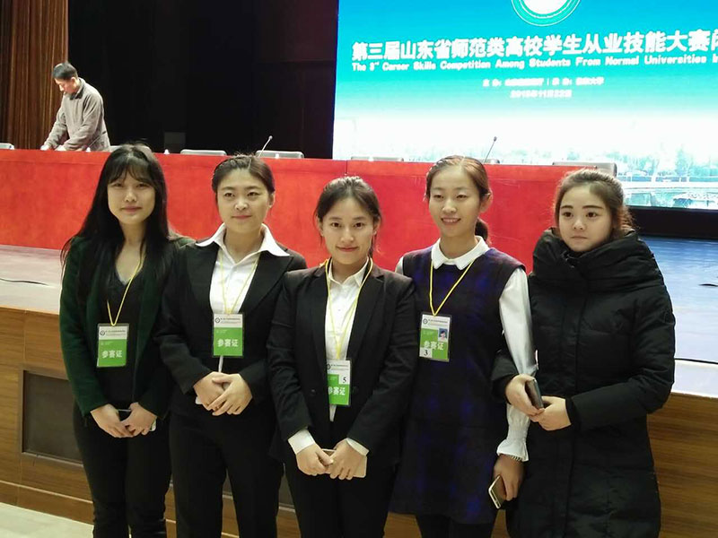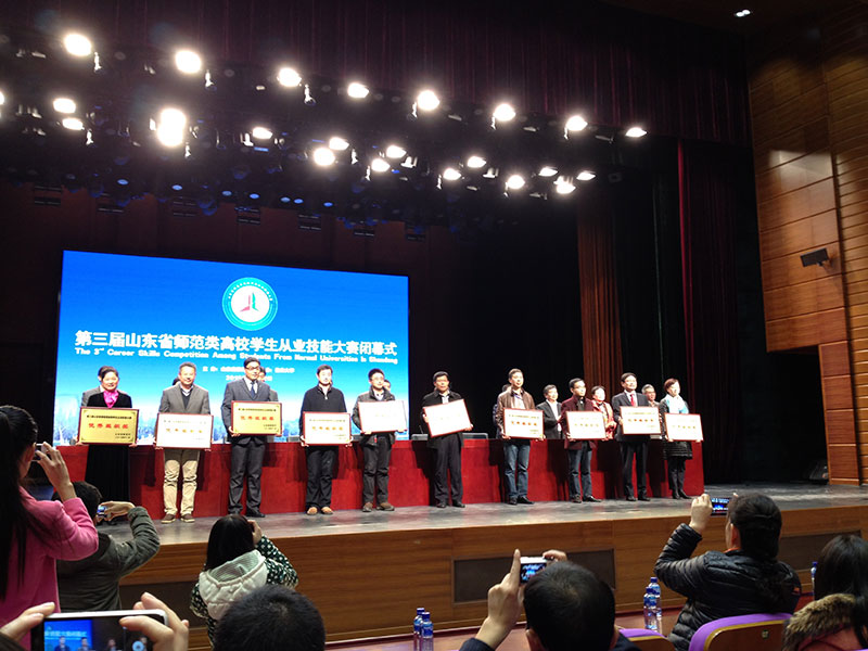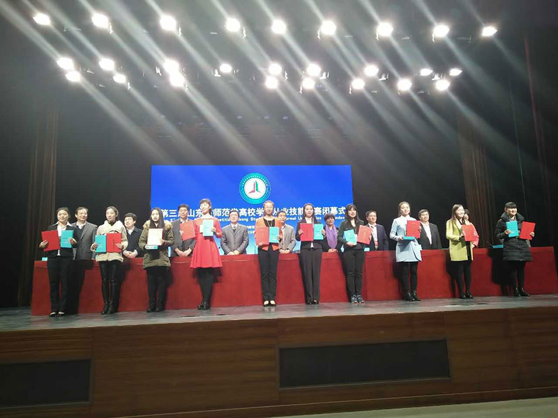 11月22日,第三届山东省师范类高校学生从业技能大赛决赛在烟台落下帷幕。由白菜网所有网站大全学子组成的白菜网所有网站大全代表队共13位选手参赛,经过2天激烈角逐,最终取得优异成绩。赵甜甜、张珺、于娟、陈宇嘉、周晓倩等5位同学分获高中化学、初中数学、小学数学、小学英语、高中物理组一等奖,其中赵甜甜、张珺、于娟3位同学成绩位列同组全省第一名,王倩、杨慧娟、严文海、庞晖、姜静等5位指导老师获优秀辅导教师奖,我校获优秀组织奖。