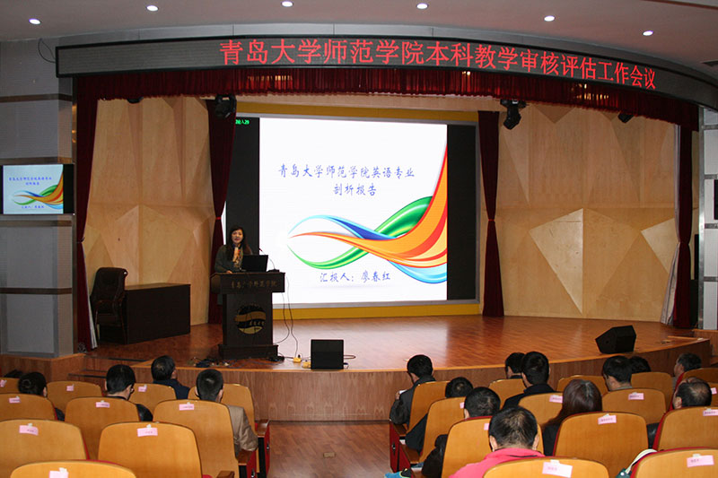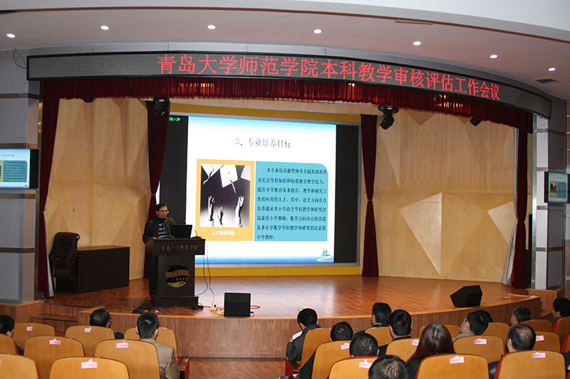 小学教育(学前教育)学院副院长马勇军、英语系主任廖春红在会上以PPT的形式围绕专业概况、专业设置与定位、人才培养方案和课程体系、师资队伍建设、教学与科学研究、学生就业与发展、存在的问题与改进方向等内容进行了专业剖析汇报。