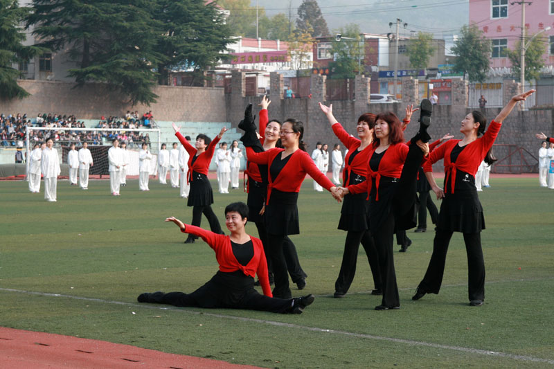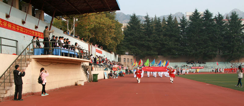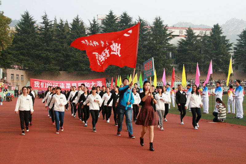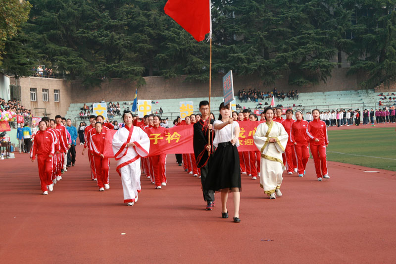 开幕式上,护旗手举着鲜艳的五星红旗,迈着整齐的步伐走过主席台。伴随着激情昂扬的运动员进行曲,彩旗方队、花束方队和各院(系)代表队英姿飒爽地依次通过主席台。随后,进行了精彩的学生太极拳表演、女教职工健身操表演和体育学院学生舞狮表演。