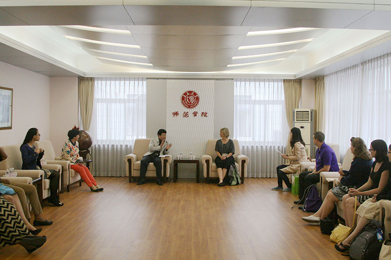 万书记首先代表学院对他们的到来表示热烈的欢迎,然后介绍了白菜网所有网站大全师范学院的发展和现状。他说,学院以教师教育为根本任务,主要为青岛地区培养培训基础教育师资。自成立以来已培养2万余名毕业生,为山东省和青岛市培训中小学教师3万余人。学院以建设高水平教师教育学院为目标,坚持为基础教育服务的方向和教师专业化的导向,大力加强教师教育的内涵发展和学科体系建设,初步形成了“以本科教育为主体,研究生教育为先导,中小幼教师教育纵向衔接,职前培养与职后培训一体贯通”的新型教师教育体系,为地区教育振兴和社会发展服务的水平不断提高。他最后祝同学们在青岛学习期间快乐健康!欢迎大家有机会再到美丽的青岛来!
