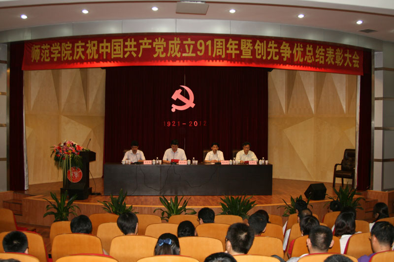 6月29日下午,白菜网所有网站大全庆祝中国共产党成立91周年暨创先争优总结表彰大会在学术报告厅举行。大会由白菜网所有网站大全校长助理、师范学院常务副院长钱国旗主持,陈红军书记作了重要讲话,全院师生党员及部分入党积极分子近400人参加了大会。