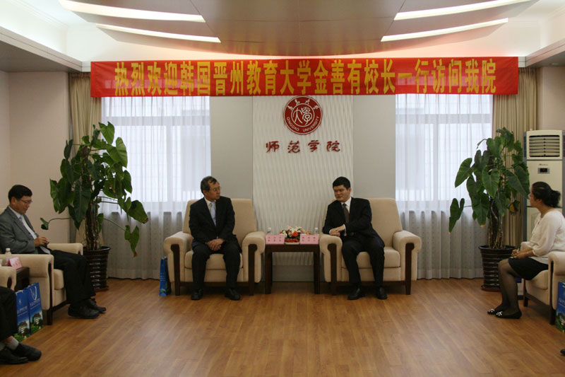 金善有校长表示对师范学院的访问期待已久,介绍了韩国晋州教育大学的发展历史和现状,并着重对韩国小学教师人才培养模式、人才培养质量、教师教育发展现状以及面临的问题等做了深入交流。他说,韩国晋州教育大学建校已有近九十年的历史,积淀了深厚的文化底蕴,专门培养小学全科教师,生源质量有着可靠的保障,但也存在着不少问题,希望韩国晋州教育大学学生的教育实习将来能够拓展到中国,开拓学生的国际视野,增强学生的国际意识。