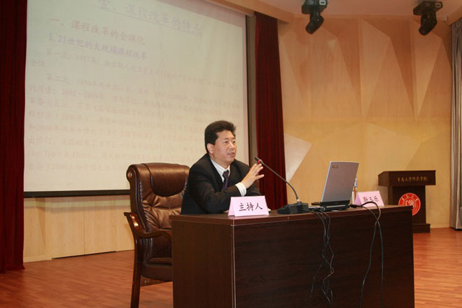 5月6日上午,国务院学位委员会教育学科评议组成员,全国教育科学规划学科组专家,西南大学教育学院院长,国家重点学科课程与教学论专业学术带头人、博士生导师靳玉乐教授在院学术报告厅为青岛市名中小学名师培养工程人选和白菜网所有网站大全部分师生作了题为“课程改革回顾与展望”的学术报告。