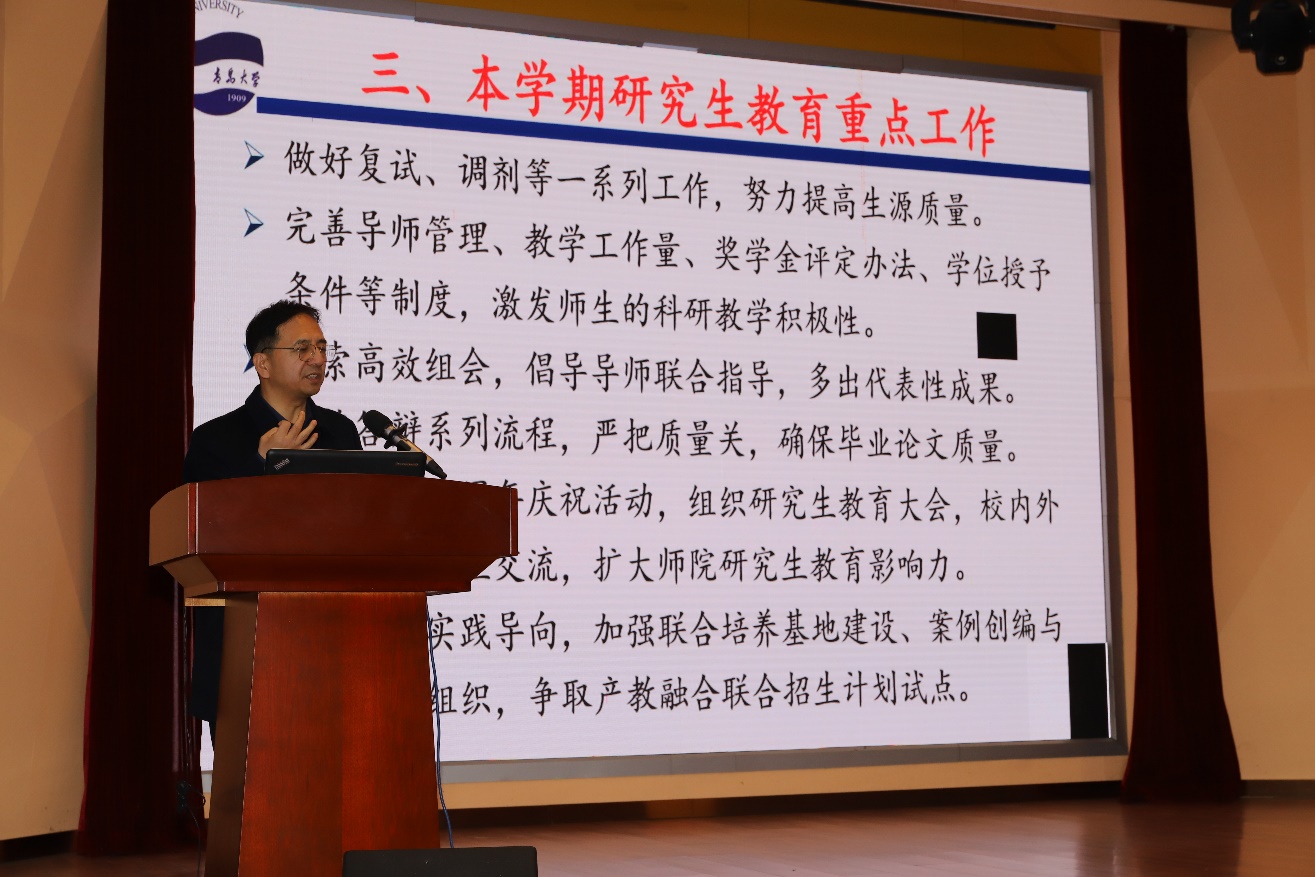 学院其他领导就各自分管的学生工作、本科教育教学、研究生教育教学、科学研究等进行了具体部署。
