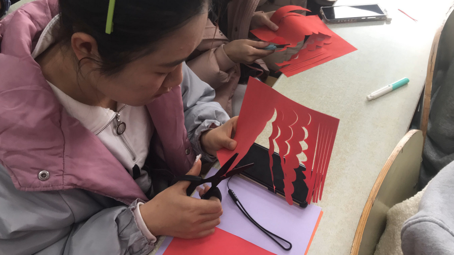 剪纸是中国非物质文化遗产之一。剪纸实践课程是中国文化概论课程贯彻体验式教学的重要一环。剪纸实践课眨眼而过,却在每个大学生心中种下了传承非物质文化遗产、传承中华优秀文化的火种,燃起了对于传统剪纸艺术热爱的火苗,启迪了对于幼儿教育与传统技艺融合的奇思妙想。