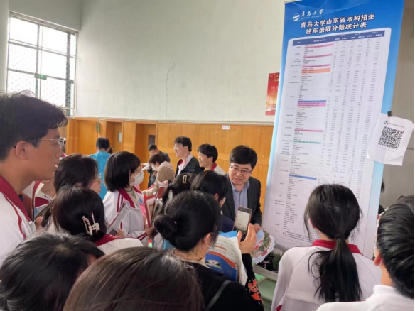 近期,为进一步提高生源质量,帮助高中学校及学生们了解我校招生政策、专业设置、办学特色等情况,根据本科招生办的统一安排,学院教师分两个阶段跟随新浪山东2023“招办进校园”直通车,走进青岛市区7所高中学校开展面对面招生拓展咨询、宣传等一系列活动。