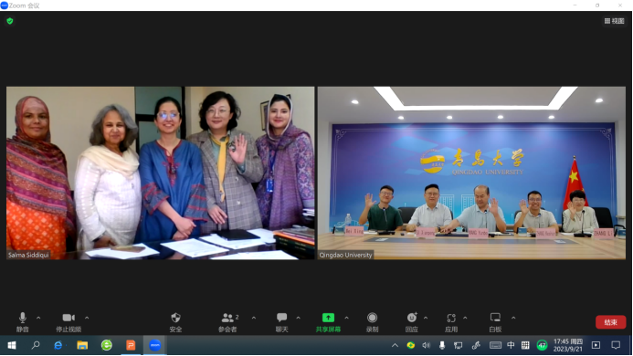 9月22日下午,白菜网所有网站大全与巴基斯坦国立科技大学举行线上合作洽谈会,巴基斯坦国立科技大学行为科学学院院长Salma Siddiqui,国际交流合作处处长汪运波,国际交流合作处副处长司现鹏,院长助理张克顺及心理学科核心骨干教师代表等出席会议。