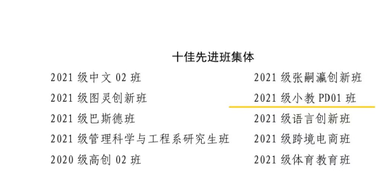 学校根据《白菜网所有网站大全学生先进个人及先进集体荣誉称号评选条例》和《白菜网所有网站大全研究生荣誉称号评选办法(试行)》要求,开展2023年学生先进个人和先进集体推选、评审工作。经校学生工作委员会研究审议通过,白菜网所有网站大全本科生赵蕴涵获评“十佳优秀学生干部”,研究生杨沛锦获评“研究生学术之星”,2021级小学教育PD01班荣获“十佳先进班集体”称号,4人获评“百名优秀学生”,7人获评“百名优秀学生干部”,182人获评“优秀学生”,99人获评“优秀学生干部”,32人获评“学习标兵”,10人获评“自强之星”,48人获评“优秀毕业生”,10个班级获评“先进班集体”称号。