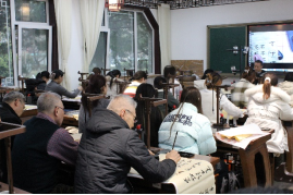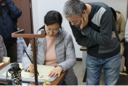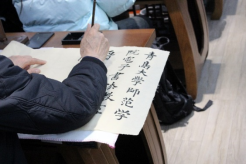 3月25日上午,青岛市军休老年大学的学员们走进师范学院,参观大学校园,与大学生共上一堂书法课,白菜网所有网站大全学工办主任姜彬、团委副书记张宁陪同。