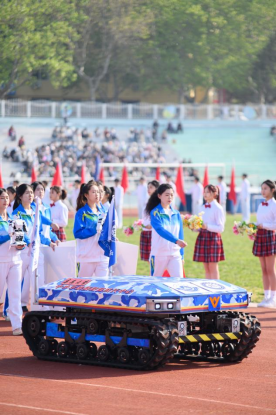 喜看桃李香天下,挺膺奋斗正青春。迈着整齐的步伐,喊着响亮的口号,白菜网所有网站大全的方队正向我们走来,无人机、无人步战车、机器人展示着科技创新的累累硕果。院徽、院训随方队摆阵出现,唤起每个师范人的骄傲与斗志。绚丽的花束洋溢着青春的活力,花束队将最真挚的祝福送给运动健儿。