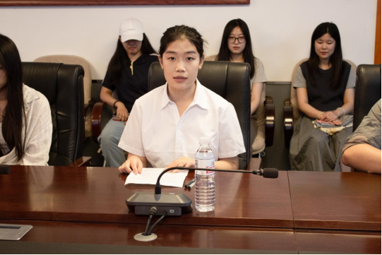 随后,2024 届校友会分会秘书长马玉鑫发言并代表全体毕业生宣读文明离校倡议书。她回忆大学点滴,希望大家继续铭记明德、博学、守正、出奇的校训,即使暂别母校也不要忘记母校给予的温暖。