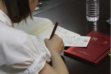 会议第三项,毕业生党员书写明信片。大家分享了自己的寄语心愿,对己殷切期望,对母校对学弟学妹表达美好祝愿,字里行间表达着自己对学院、对党组织及全体老师的感激之情,也进一步坚定了自己在未来学习工作中爱党、爱国、爱校的信念。
