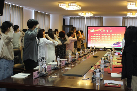 会议第二项,2020级本科生辅导员李萌萌带领全体成员重温入党誓词。一句句铿锵的誓言凝聚着党员们对党的忠诚和热爱,表达着全体毕业生党员不忘初心、牢记使命,青春向党、接续奋斗的信念和决心。