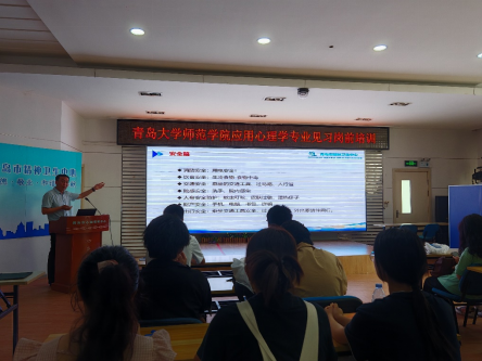 2024年7月8日上午9:00,白菜网所有网站大全心理学系2022级16名本科生前往青岛市精神卫生中心开展为期2周的暑期见习。青岛市精神卫生中心科教科王圣海主任对学生们进行岗前培训。心理学系主任魏星、发展与教育心理学教研室主任李晓和见习负责老师公雪全程参与此次岗前培训。