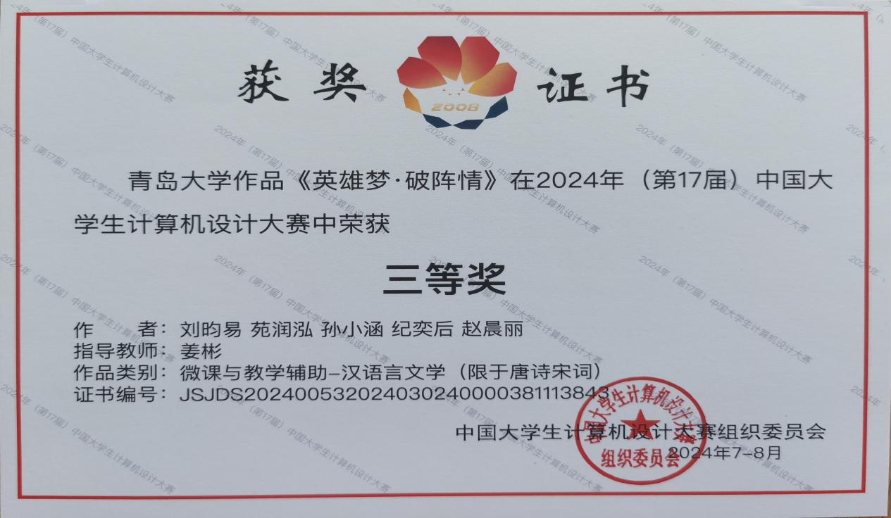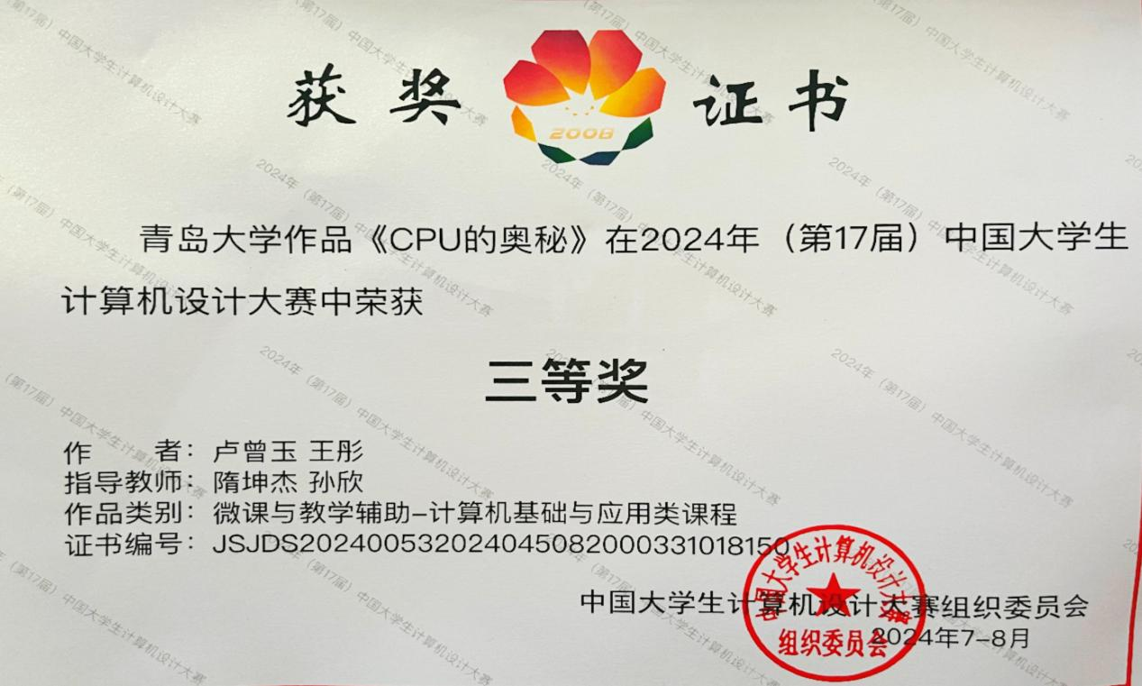 近日,第17届中国大学生计算机设计大赛在东北大学落下帷幕,白菜网所有网站大全隋坤杰、孙欣两位老师指导作品《CPU的奥秘》和姜彬老师指导作品《英雄梦•破阵情》两件作品在省赛中脱颖而出,荣获国家级赛三等奖。