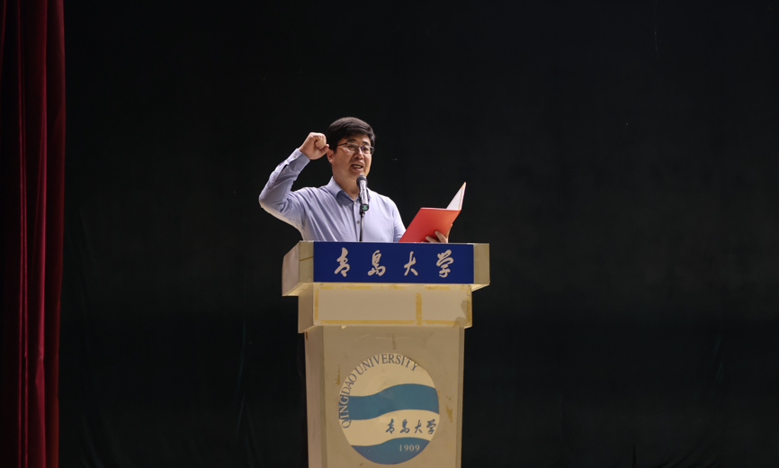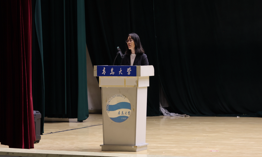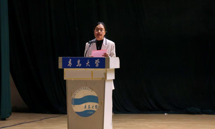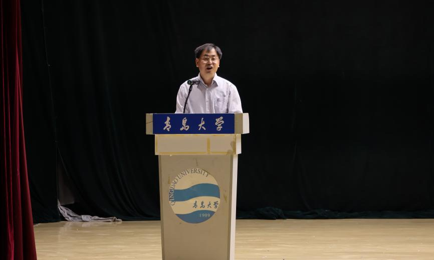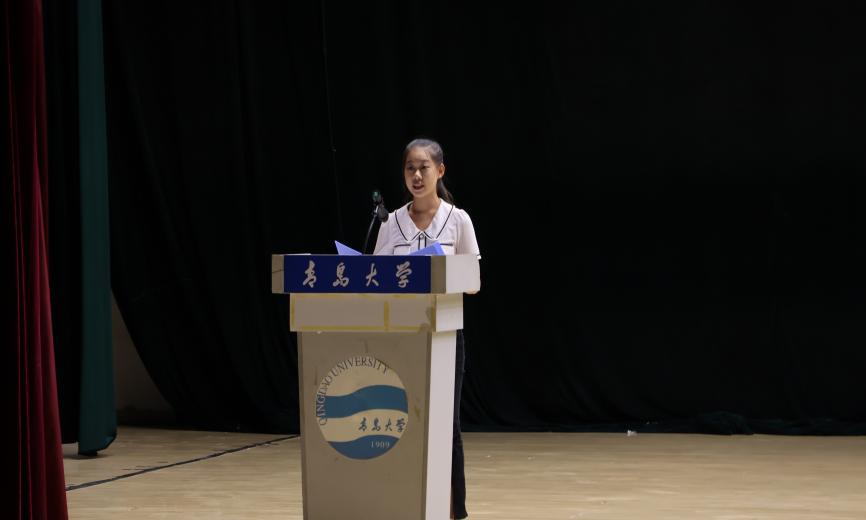 新生代表张迈通过讲述自己与青大的故事,呼吁同学们主动作为,勇于创新,在坚定人生志向的同时,心怀山河,融入大我,厚植奋进强国的初心,以实际行动书写新时代青年的壮丽诗篇。