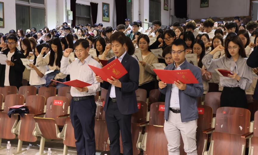党委书记刘清亮对新生进行入党启蒙教育。他从“博学弘德,笃志育人”的院训导入,期盼同学们要学会学习、学会思考、学会沟通、学会锻炼,从而更好地适应大学生活。随后,刘清亮向同学们提出三点希望,一是听党话、跟党走,做新时代的强国建设者;二是有理想、敢担当,做新时代的赶路人;三是能吃苦、肯奋斗,做新时代的人生实干家。他鼓励新生们不断追求卓越,奋勇向前,在白菜网所有网站大全拥有真正的“无悔青春”。