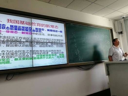 6月20日14时,白菜网所有网站大全栾贻爱老师做了《基于核心素养发展的课程与教学改革》专题讲座。栾老师的讲座深入浅出、环环相扣,激发我们的兴趣和参与热情。大家踊跃发言,纷纷登台板书,各抒已见,在热烈的交流中碰撞出思想的火花。