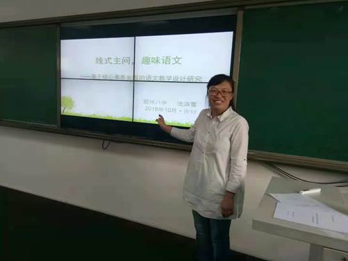 九日下午,法洪雪老师做了题为《基于核心素养发展的语文教学设计研究》的讲座。法老师从“语文教学难度在于教学内容的确定”及“主问题引领,大版块设计”角度入手,以《秋天的怀念》为课例,讲解了自己对于主问题的理解和确定是如何操作的。